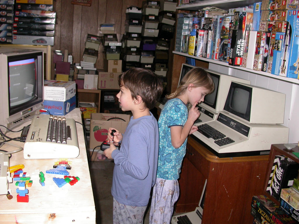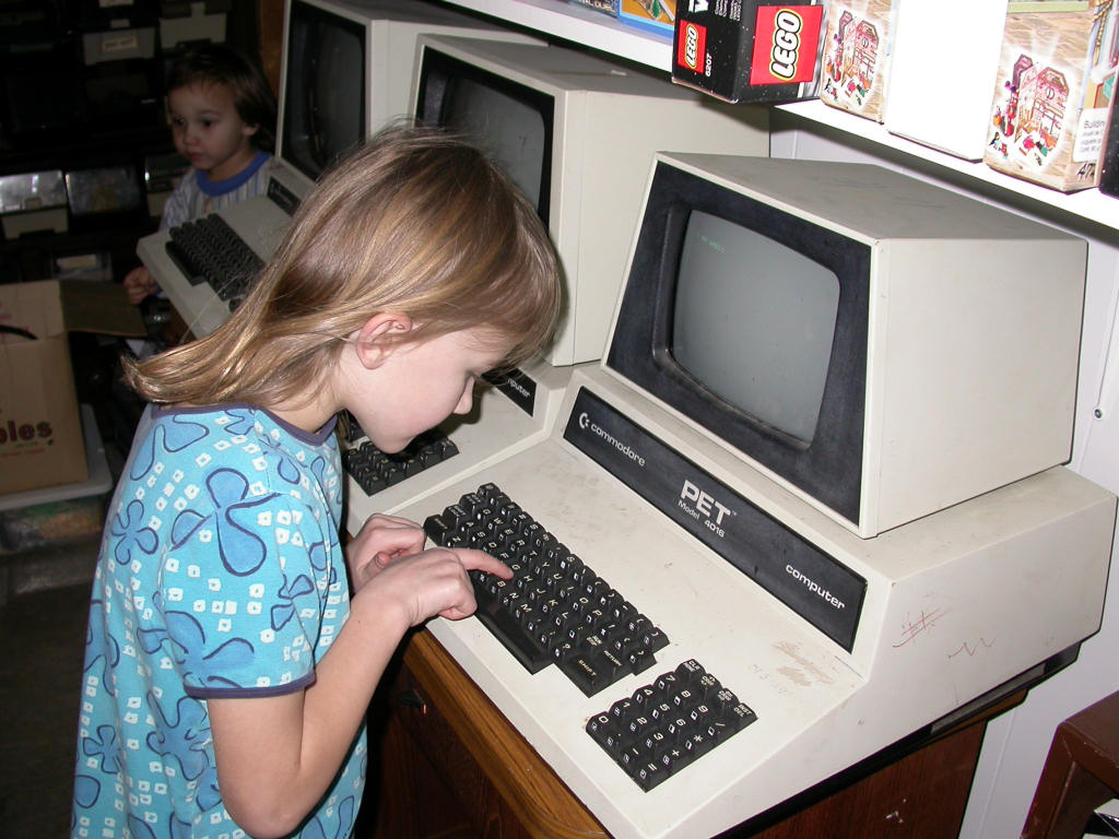 Heidi has always been intrigued by the PET. I remember that green screen and flashing cursor being so compelling when I was seven in 1979; it doesn’t seem to have lost it’s allure to seven-year-olds in 2007 either. She spent quite a while typing messages from Sonic the Hedgehog to Knuckles, and then made various “lace” and “carpet” designs with the PETSCII graphics after I showed her the shift-lock key.